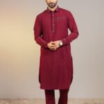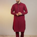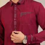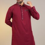 Product details of Premium Pakistani Style Shirt Collar Maroon Color Kabli Set for Men’s.
