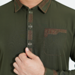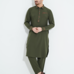 Product details of Premium Pakistani Style Shirt Collar Olive Color Kabli Set for Men’s.